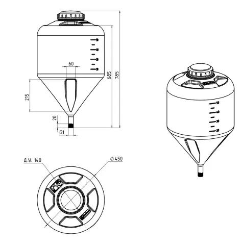 Емкость с полным сливом БИО 60. Объем 60 литров