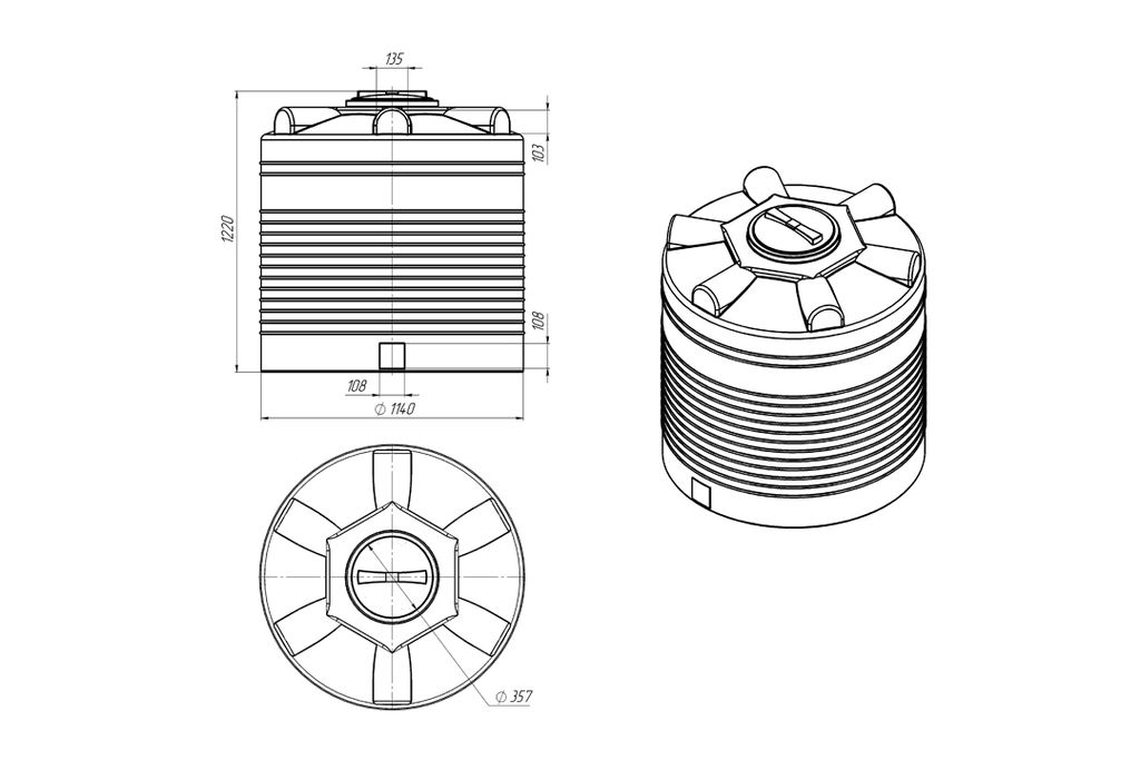 Емкость пластиковая полиэтиленовая вертикальная для воды ЭВЛ 1000. Вместимость 1000 литров.