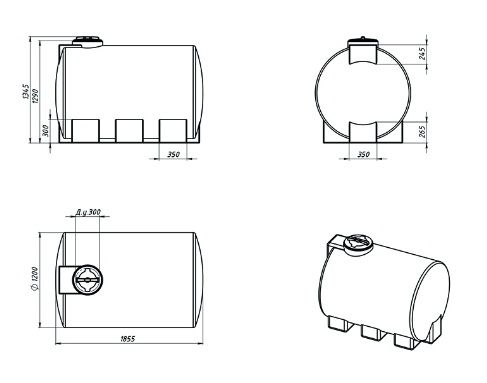 Емкость пластиковая горизонтальная для воды ЭВГ2000. Вместимость 2000 литров
