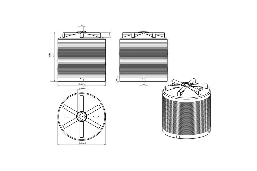 Емкость вертикальная цилиндрическая полиэтиленовая для воды ЭВЛ 7500 синего цвета. Вместимость 7500 литров.