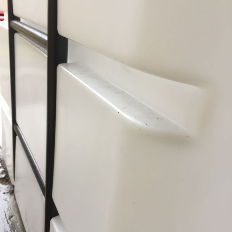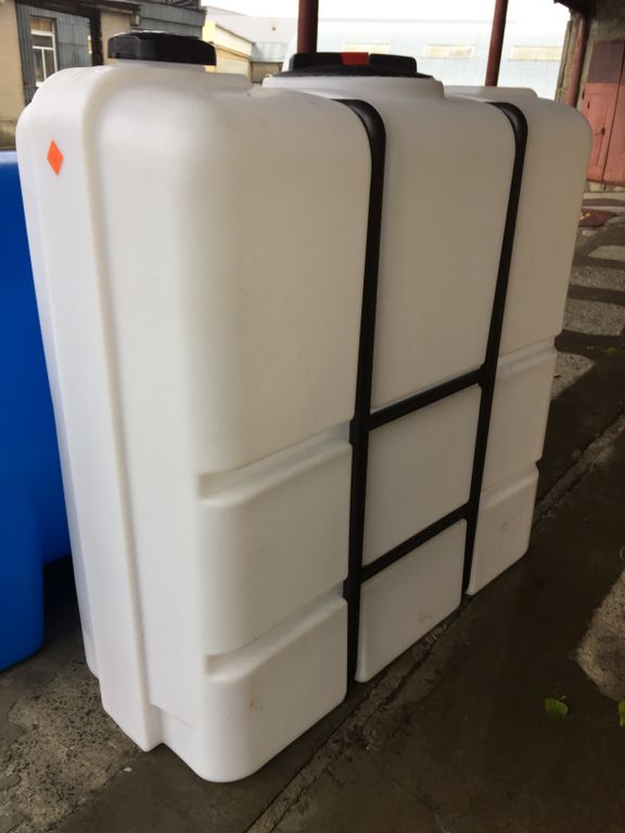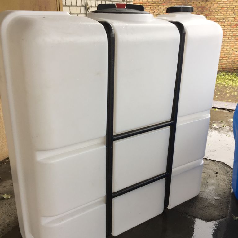 Емкость для воды K1000 белая в обрешетке. Объем 1000 литров. Обрешетка из стали.