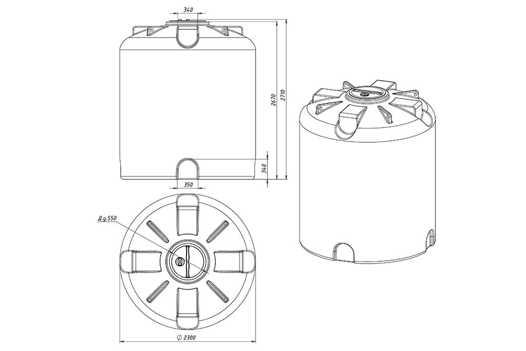 Емкость пластиковая вертикальная КАС ТR10000. Вместимость 10000 литров.