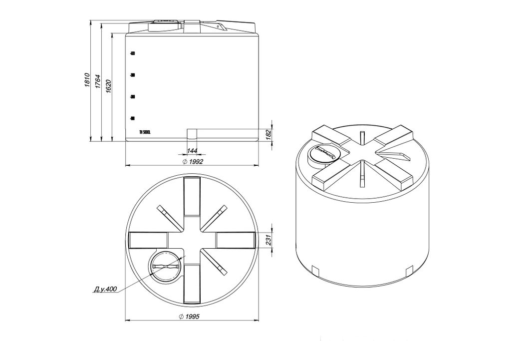 Емкость пластиковая вертикальная КАС ТН5000. Вместимость 5000 литров.