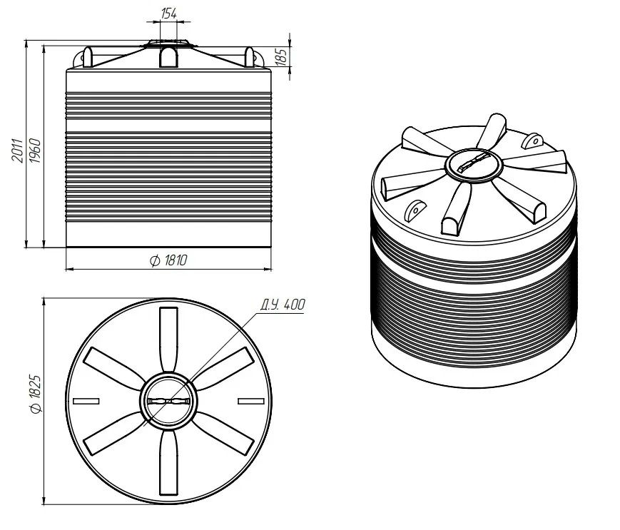 Емкость пластиковая вертикальная КАС ЭВЛ5000. Вместимость 5000 литров.