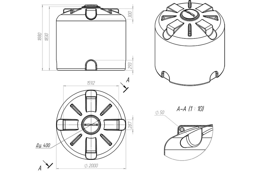 Емкость пластиковая вертикальная КАС ТR 5000. Вместимость 5000 литров.