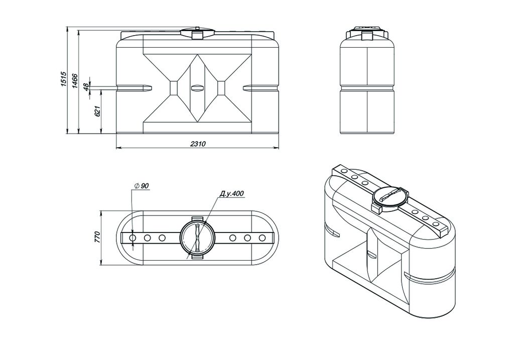 Емкость узкая вертикальная для воды S2000. Объем 2000 литров.