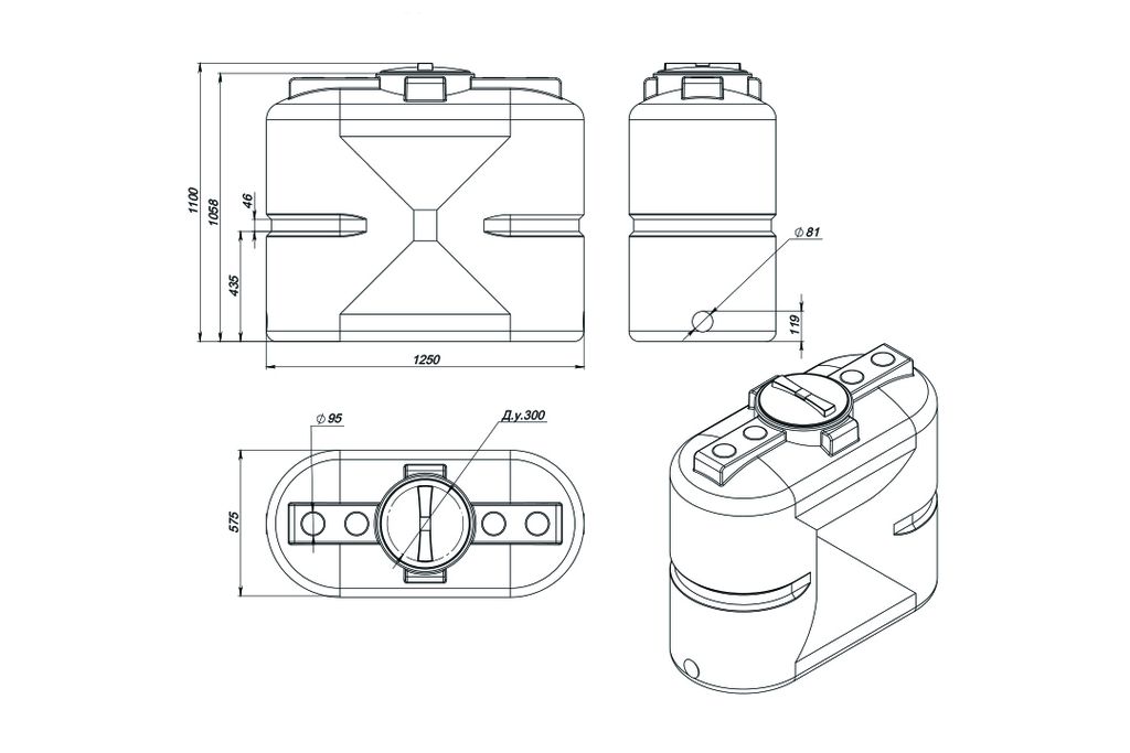 Емкость пластиковая вертикальная для воды S500. Емкость на 500 литров прямоугольной формы.