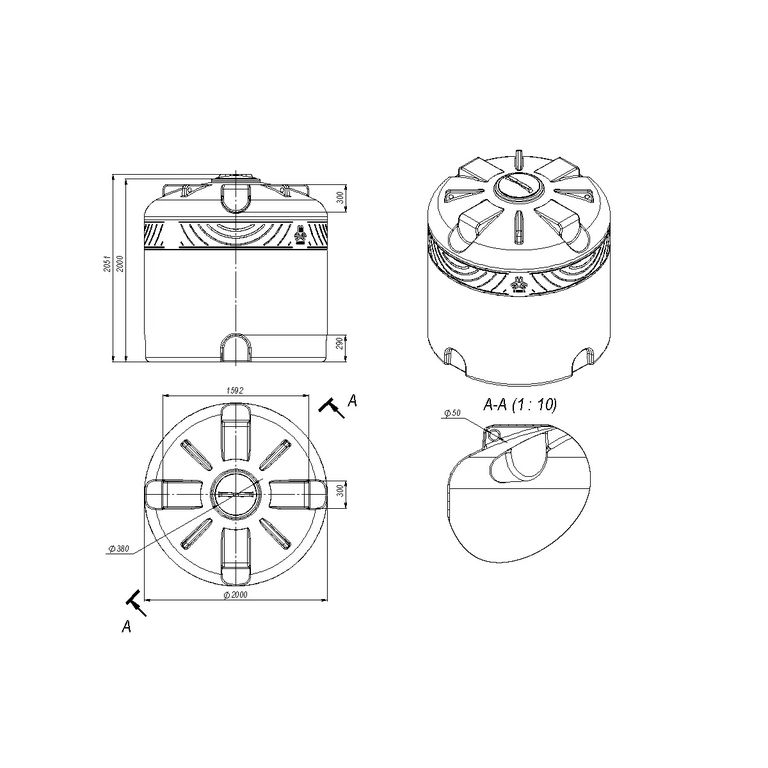 Емкость пластиковая вертикальная для воды ТR5500. Вместимость 5500 литров.
