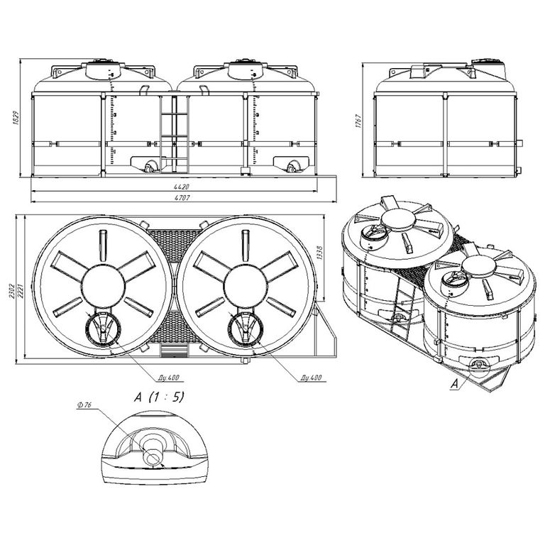 Транспорная кассета на 10000 литров с полным сливом для перевозки воды, средств защиты растений (СЗР). Комплектация металлический пол, лестница, слив на 3".