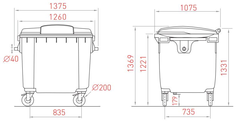 Евроконтейнер мусорный пластиковый 1100 литров с крышкой