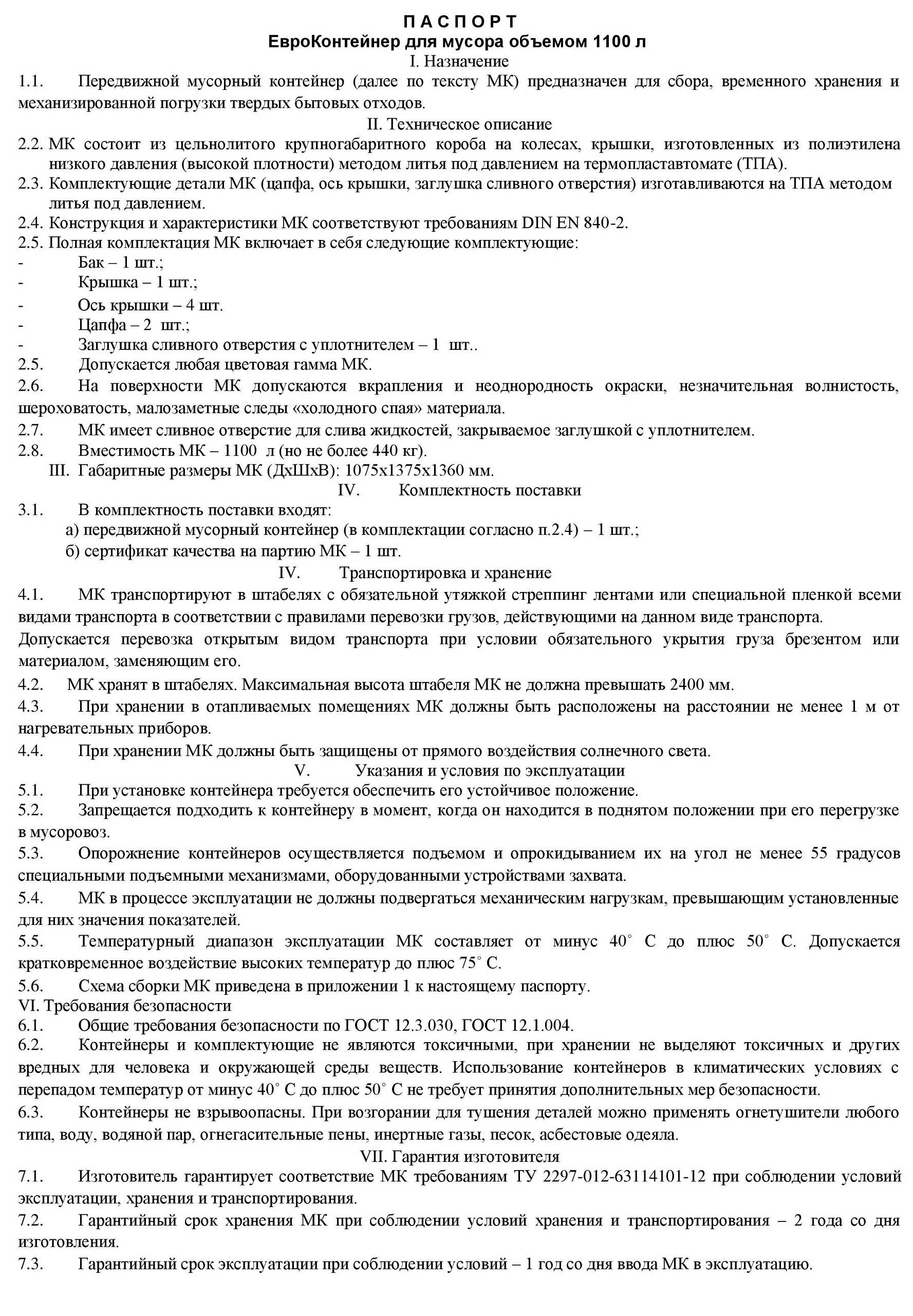 - Объем 1100 литров