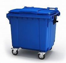 Контейнер мусорный пластиковый 1100 литров с крышкой, на колесах. Цвет синий.